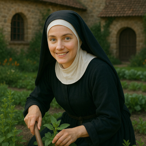 Die Sonne steht hoch, ihre Strahlen sind hart. Der Garten des Klosters liegt in stillem Glanz, zwischen Kräuterbeeten, schmalen Pfaden und frisch umgegrabener Erde. Eine junge Nonne kniet im harten Boden, die Hände schmutzig, die Finger wund vom Zupfen und Graben. Der Geruch von Salbei, Thymian und Erde mischt sich mit Schweiß. Jeder Zug am Unkraut, jede Bewegung ist schwer, und doch erfüllt sie die Arbeit mit einem stillen Ernst. Sie heißt Hildegard. Ihr Körper ist schwach, ihre Augen oft...